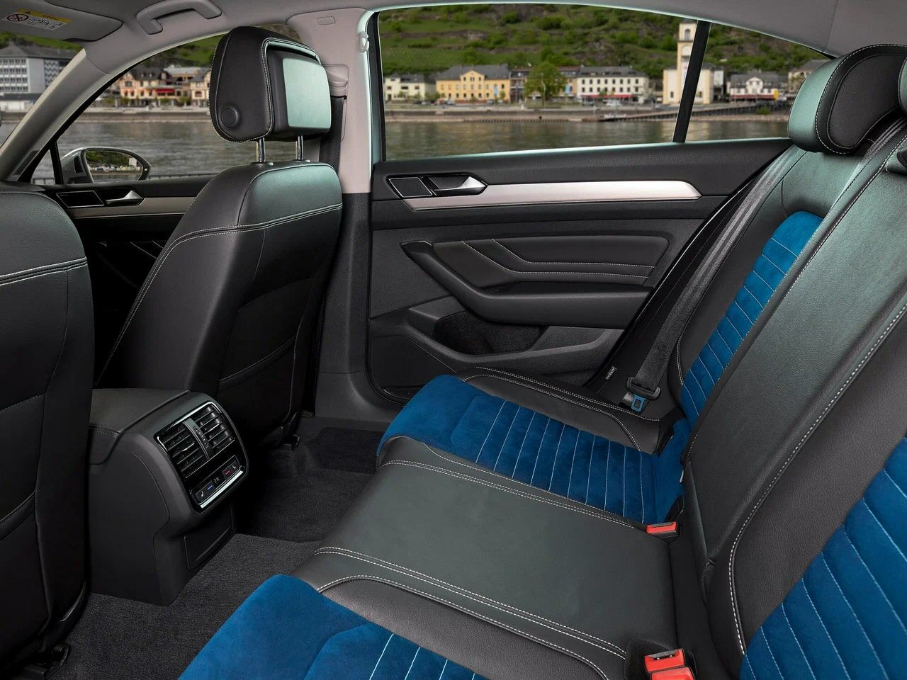 - Спинка заднего сиденья асимметрично разделенная, складная, центральный подлокотник с подстаканниками и проемом для погрузки предметов